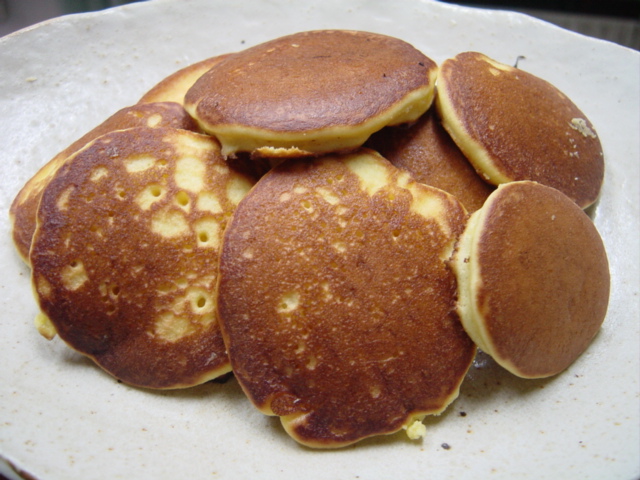 重曹がポイントになります。ベーキングパウダーでやると、どら焼きではなくパンケーキになります。重曹独特の風味と黄緑色っぽい色味がどら焼きらしさの大部分を占めていると言えます。