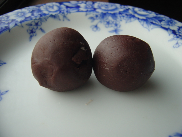 今までの餅チョコは米粉の団子にココアを直接練りこんで作っていましたが、チョコクリームを作りそれで米粉を練るとどうなるのかやってみました。