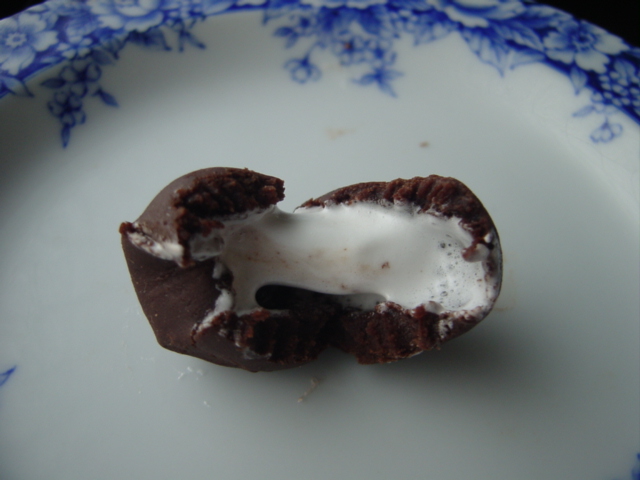 今までの餅チョコの方が「チョコレート」という感じでしたが、これは「チョコ風味の和菓子」といった風情です。しかしこの歯ごたえは気に入りました。