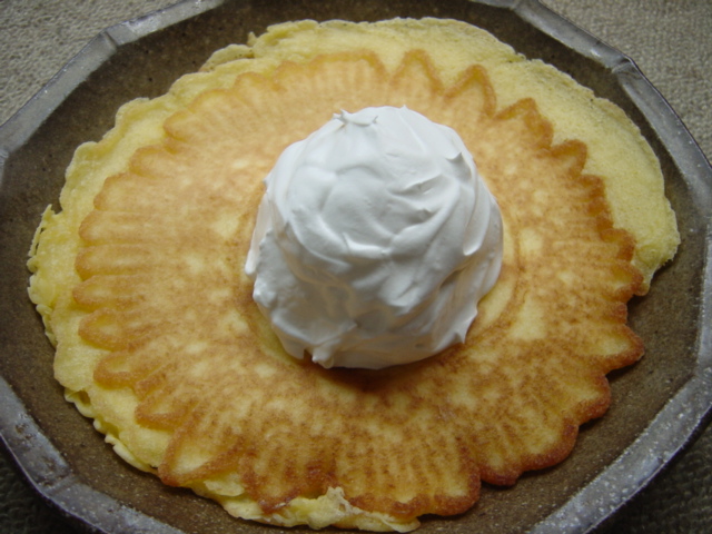 花形模様の中心部分にきれいな円が描かれており、この空白を何かで埋めたいと思い、乳、卵不使用生クリームをホイップしたものをのせてみました。