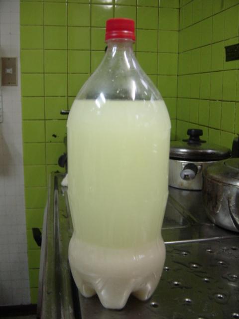 このイコセン酸を豊富に含むサラダ油を米粉の乳酸菌飲料に加えて実験してみました。いちおう塩も加えることに。