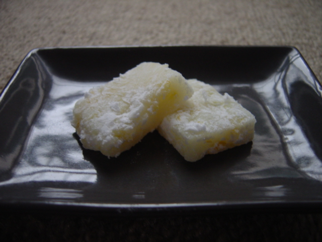 食べてみると食感は求肥です。もっと甘みを抑えて、ゆずを入れないのであれば求肥そのものです。
