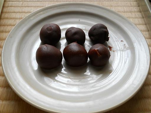 ↓どれどれとさっそく味見をしてみるとちゃんとチョコ風味。モチモチ。後を引きます。で、気が付いたら全部食べてしまっていました。